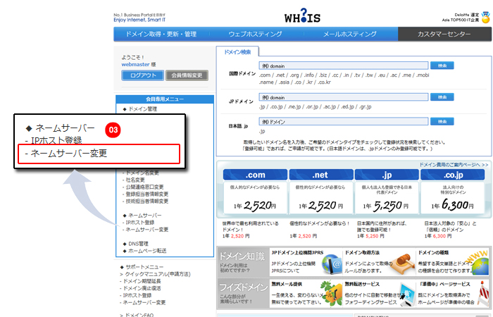 ドメイン関連のトップページが表示されます。 |