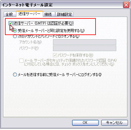「送信サーバー」タブの「送信サーバー(SMTP)は確認が必要」をチェックします。