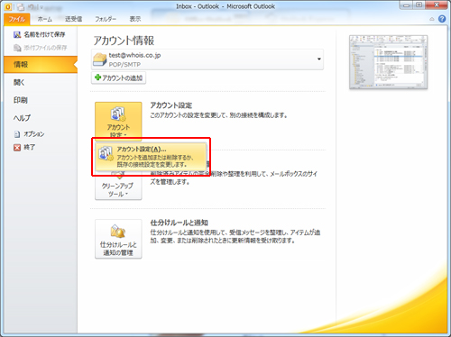 ファイル > 情報 > 「アカウント設定」をクリック |