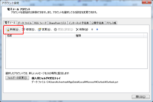 電子メール > 「新規」をクリックします。