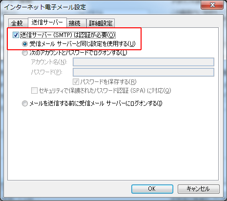 メール サーバーへのログオン情報