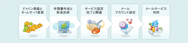 ドメインを登録していない場合 まだドメイン登録がお済でない場合、 [ドメインお申し込み] ボタンをクリックし、ドメインを先に登録してください。ドメインも登録していて、ホームページも運営している場合 他社のウェブホスティングサービスまたは、自社サーバを利用していたり、他の理由でネームサーバ情報を変更できない場合には、該当ウェブホスティング機関または、ウェブサーバ管理機関を通して ‘MXレコード値’ 情報修正を要請してください。 * MXレコード値 Hostname : mail.自社ドメイン / IP : 110.234.13.54 ドメインは既に登録しているけど、ホームページを運営していない場合 ドメインは登録されていて、フイズでメールのみ利用する場合、ドメインのネームサーバ情報を(株)フイズネームサーバ情報に変更してください。* プライマリネームサーバ Host : ns1.whois.ne.jp / IP : 203.104.179.252 * セカンダリネームサーバ Host : ns2.whois.ne.jp / IP : 110.234.12.21