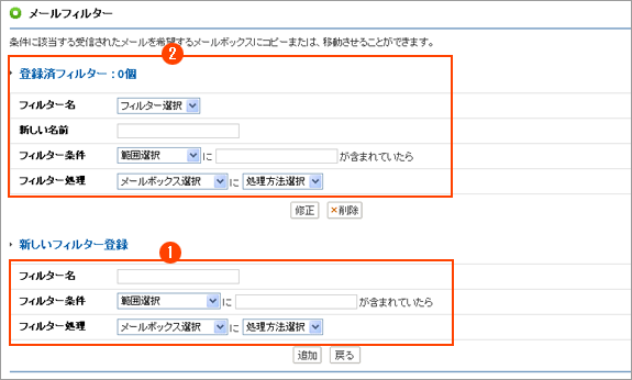 受信メールをフィルター条件によって、メールボックスに移動又は、削除することができます。