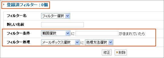 * フィルター処理で '削除する'を選択した場合、削除されたメールを復旧することはできません。 慎重に選択してください。
